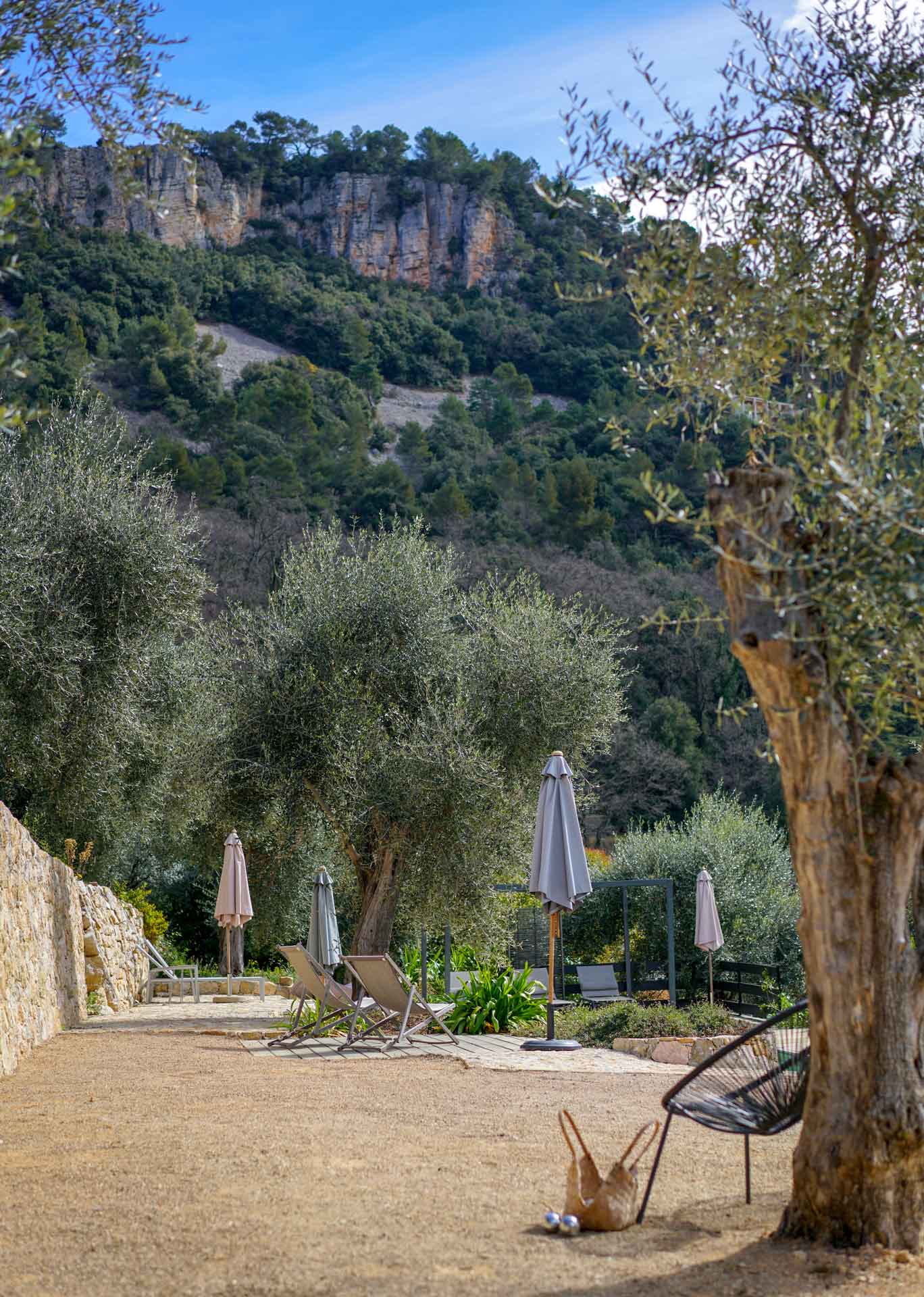 Ses murs de restanques en pierres sèches, ses oliviers pluri-centenaires, ses essences méditerranéennes parfumées, sa forêt de chênes, sa vue panoramique sur les collines de l’Estérel et les falaises et son incroyable biodiversité.