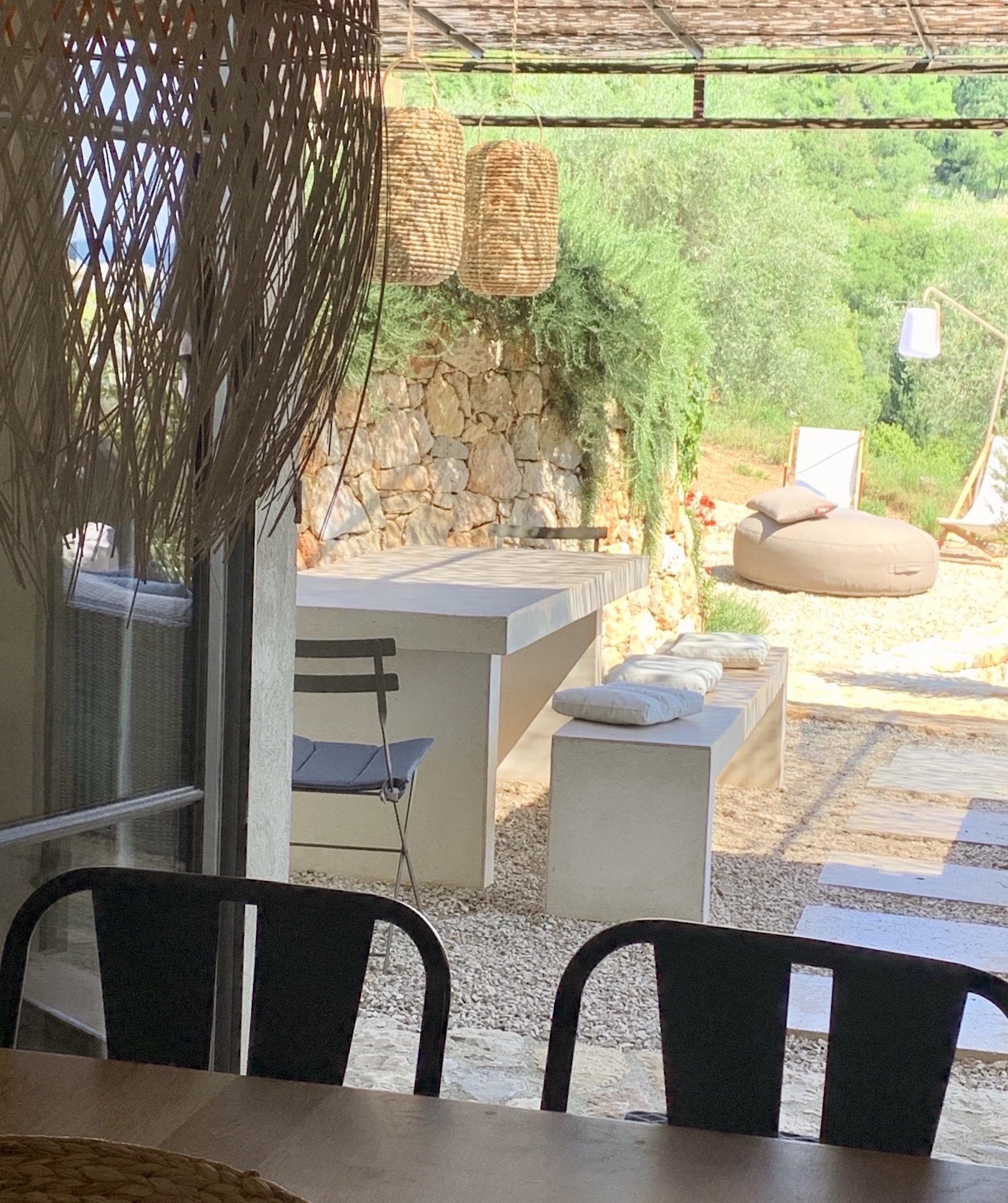 On y séjourne au naturel avec des matériaux sains: du bois, de la pierre, du rotin, de la paille, du lin et du coton bio…